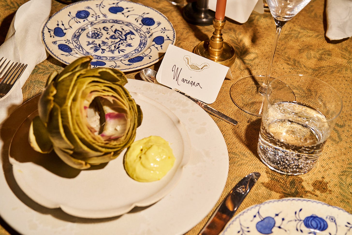 Mariana: Hiding a note, a chocolate coin, or a tarot card under the dinner plate. It’s a small surprise discovered once the plates are cleared. A little reward for staying until dessert.